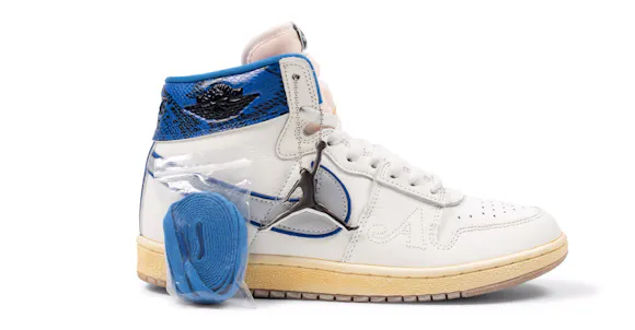 Sail leather upper and Game Blue snakeskin. Metallic Platinum Swoosh panels with Game Blue Swoosh underlays. Co-branded inner tongue label with “Awake NY” stamping on the heel. Awake NY’s classic “A” logo stitched on the mudguard.